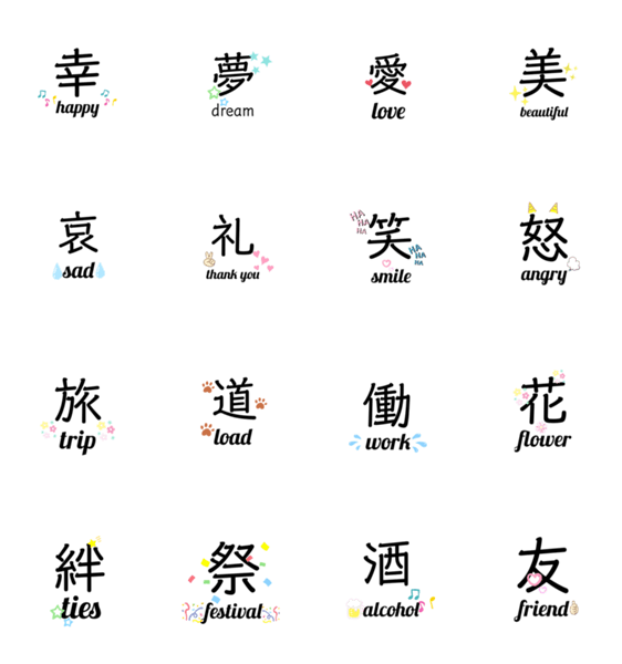 可愛い 使える 漢字絵文字 Emojilist Lineクリエイターズ絵文字まとめサイト